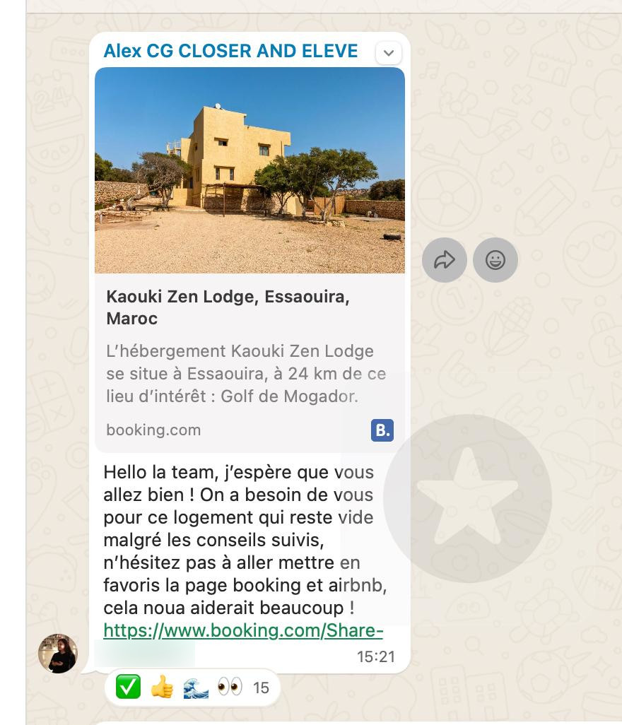 Je tiens à remercier chaleureusement Concierge Élite Maroc pour son accompagnement, son professionnalisme et sa réactivité exemplaire.